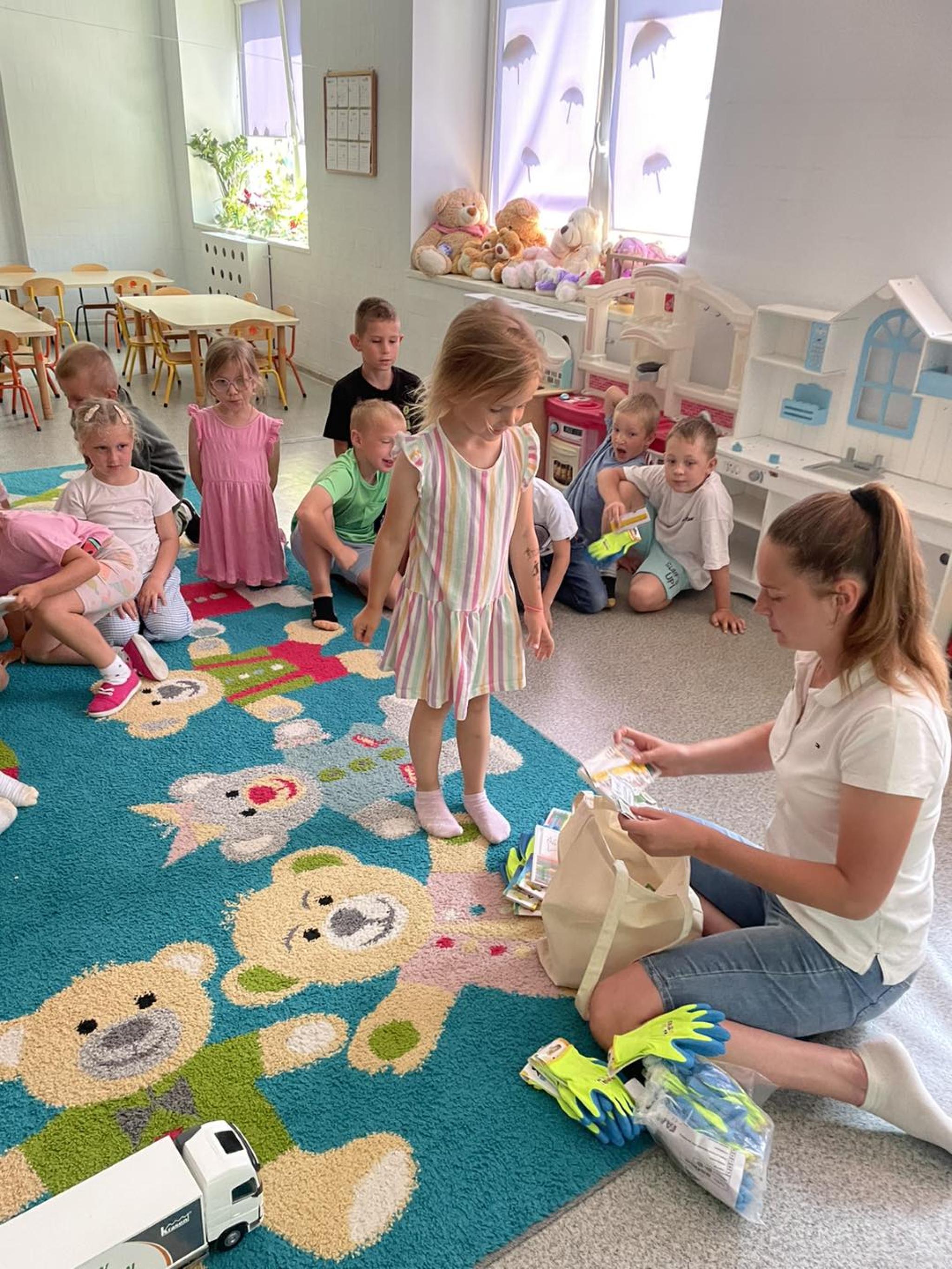 Opowiedziała nam o tym czym się zajmuje i przybliżyła proces przygotowywania rozsady. Dziękujemy za odwiedziny, upominki dla dzieci oraz przyniesie rozsady, którą wspólnie posadziliśmy w przedszkolnym ogródku.