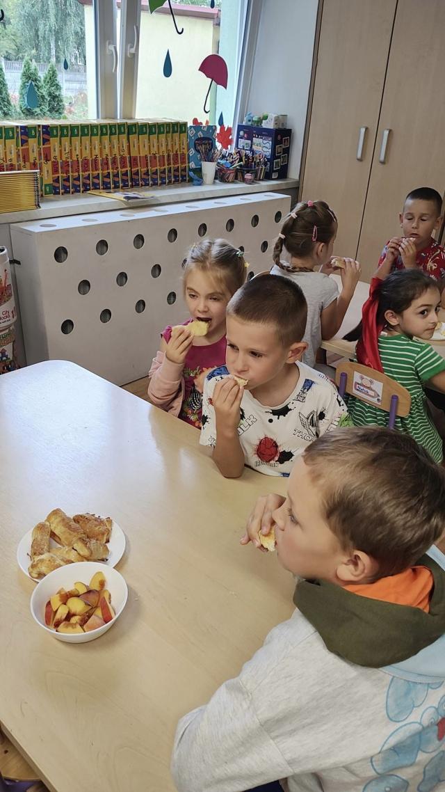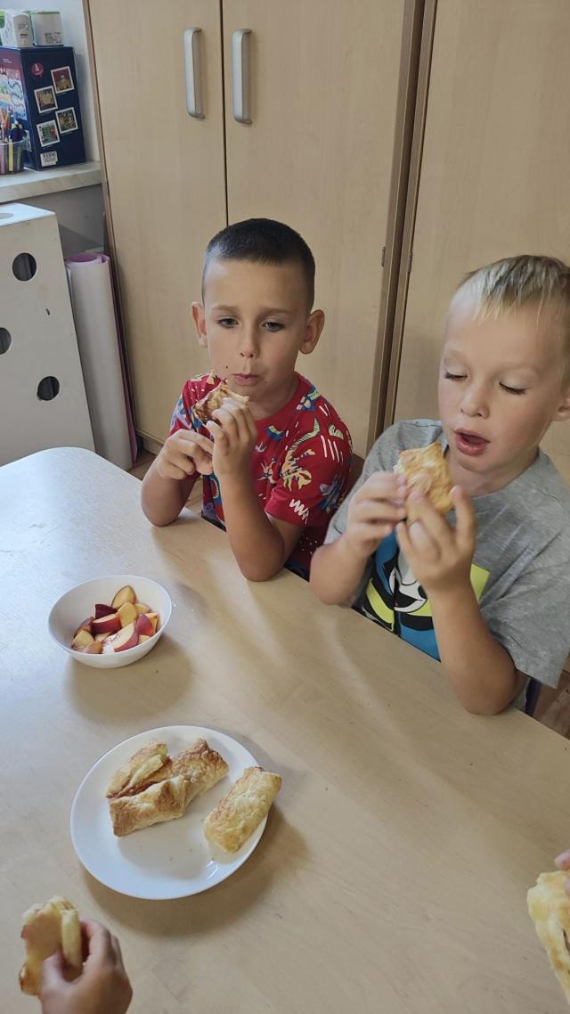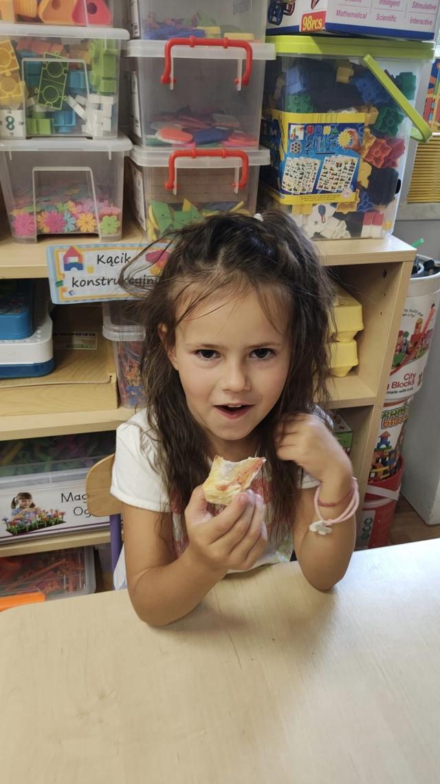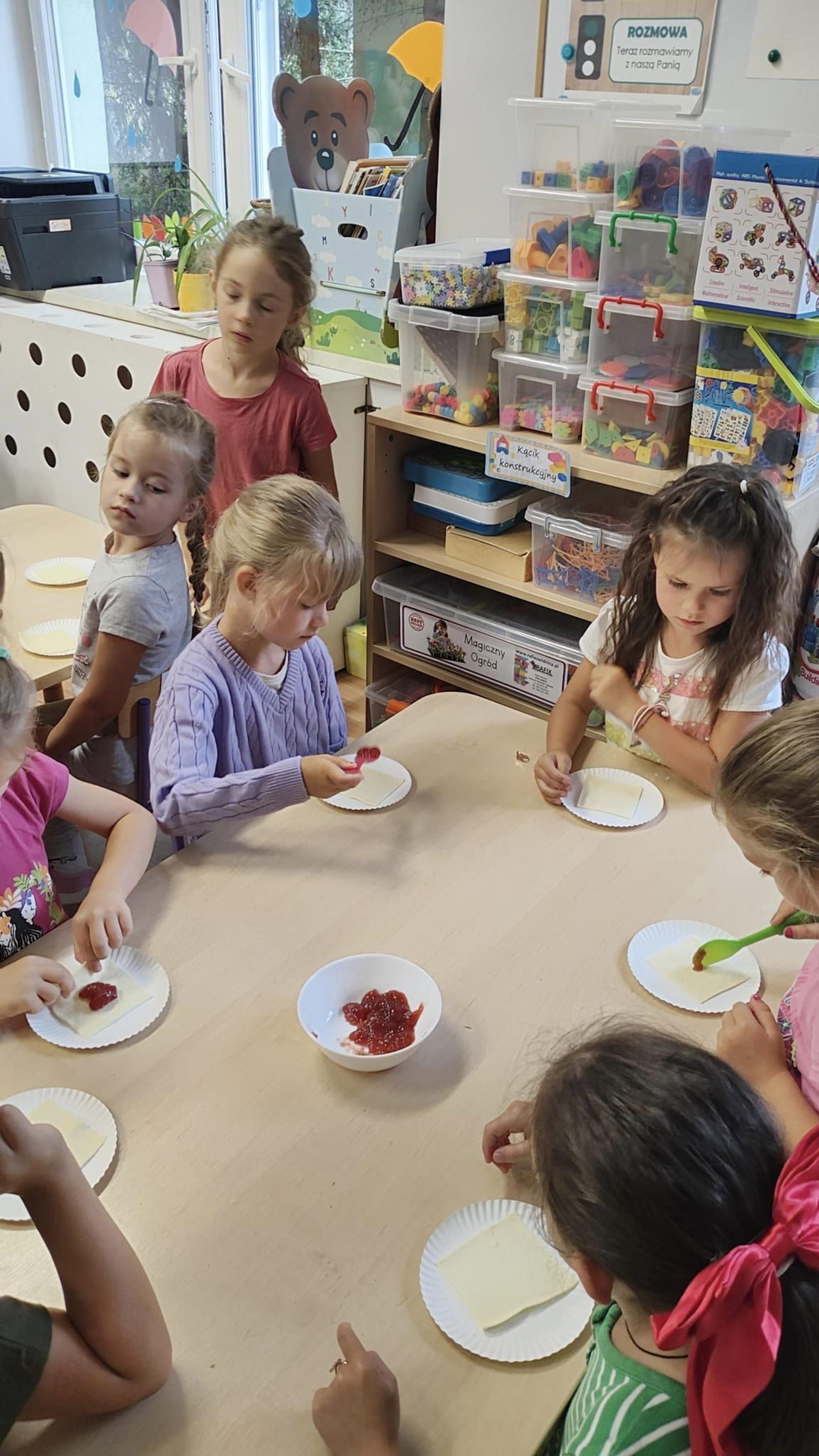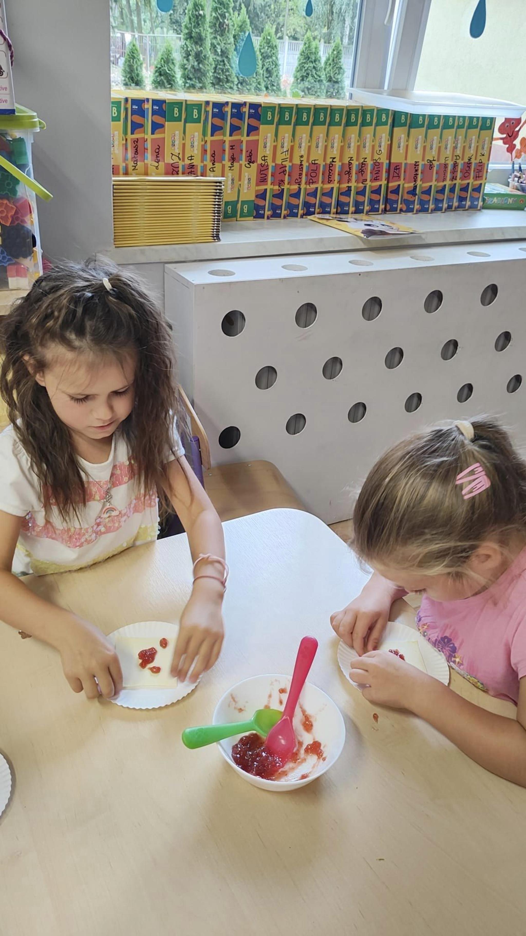 Biedroneczki w ramach zajęć kulinarnych wykonały ciasteczka z dżemem truskawkowy.